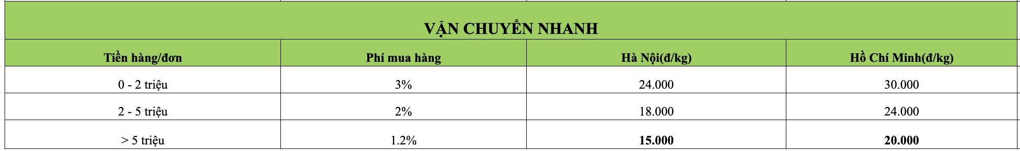 – Giá vận chuyển có thể thay đổi theo từng thời điểm, áp dụng tại thời điểm hàng về kho Việt Nam.